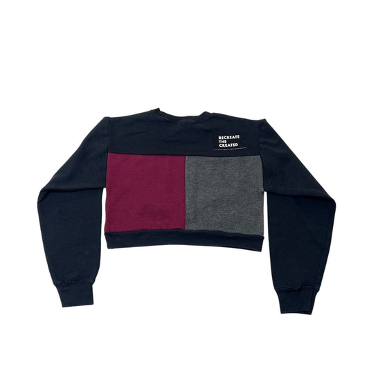 Crop Crewneck Sweatshirt in Black, Maroon, & Grey (S)