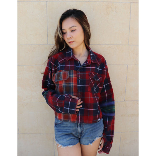 Crop Crewneck Sweatshirt in Black, Red, Grey & Blue (S)