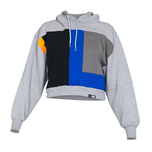 Founder's Originals Collection Crop Hoodie in Black & Red Patchwork (L)