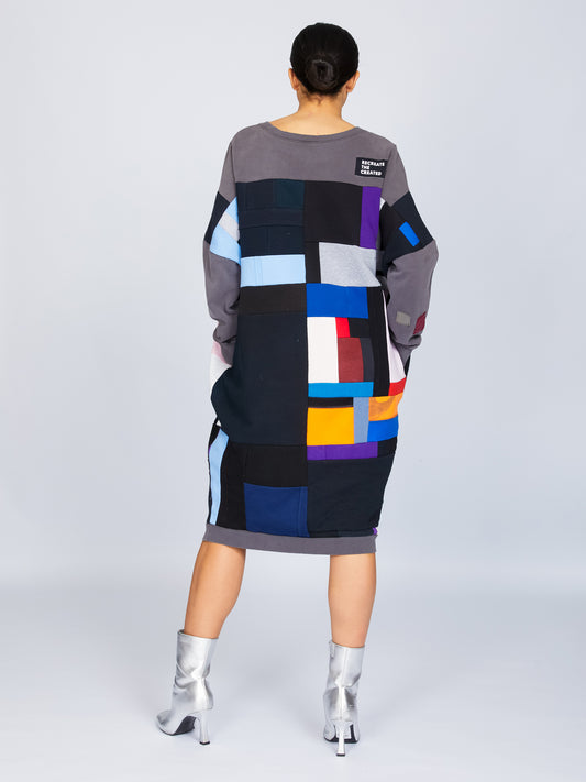 Fly Dress Made From Upcycled Sweatshirts In Grey & Blue