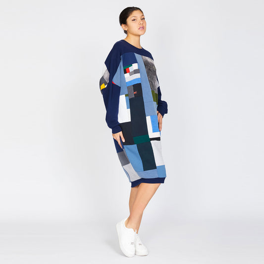 Fly Dress Made From Upcycled Sweatshirts In Navy Blue