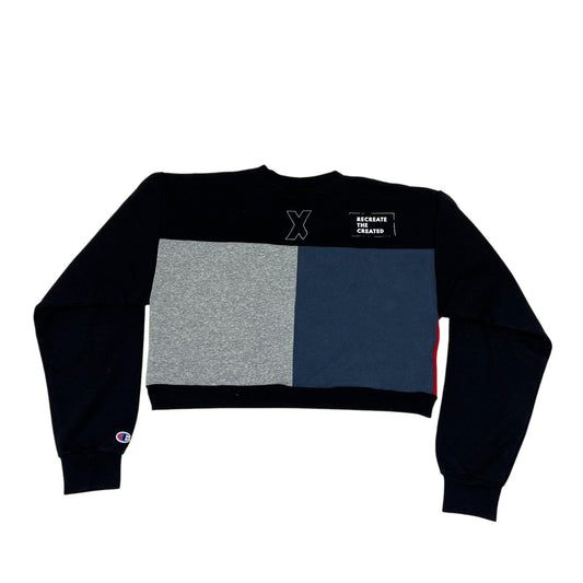 Crop Crewneck Sweatshirt in Black, Red, Grey & Blue (S)