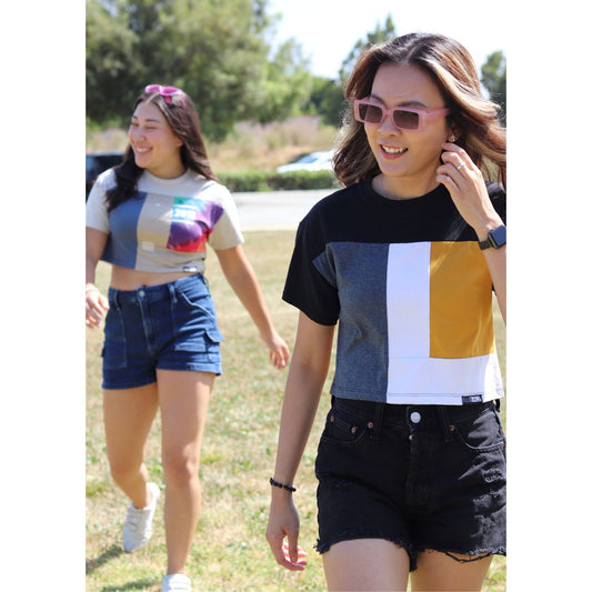 Reclaimed Crop T-shirt in Black, White & Mustard (S)