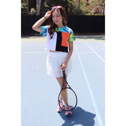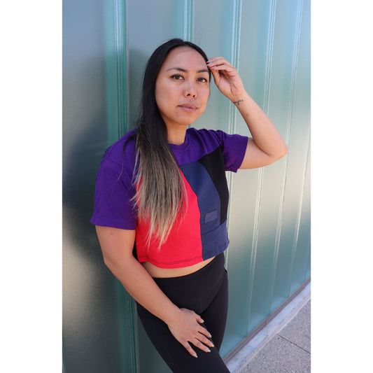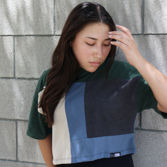 Upcycled Crop T-shirt in Cobalt Blue & Navy (S)